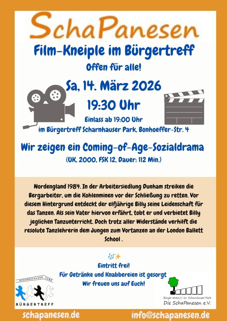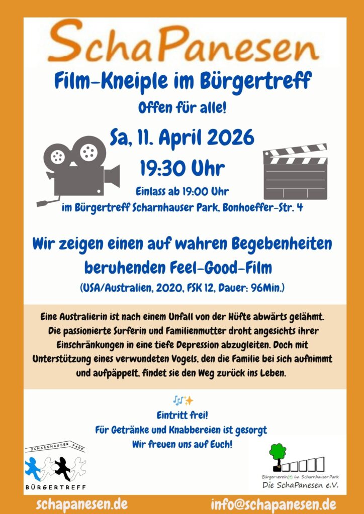 Unser letztes Filmkneiple vor der Sommerpause gibt es am 11. April, wie immer im Bürgertreff im Nachbarschaftshaus im Scharnhauser Park. Wir zeigen einen auf wahren Begebenheiten beruhenden Feel-Good-Film: