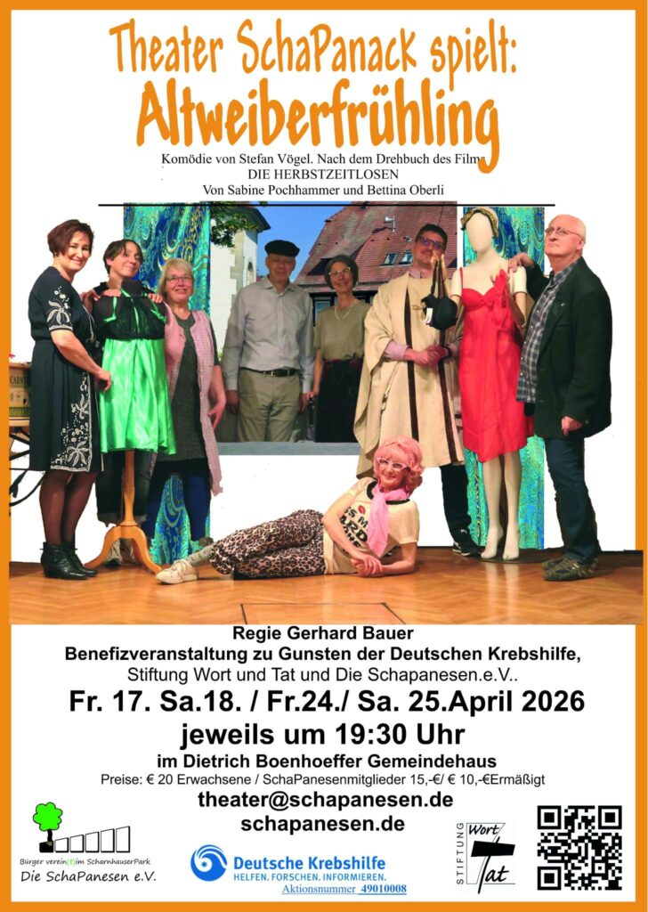 Eine vergnügliche Komödie, mit Liebe inszeniert und humorvoll auf die Bühne gebracht vom Ensemble des Theater SchaPanack mit alten und neuen Gesichtern.